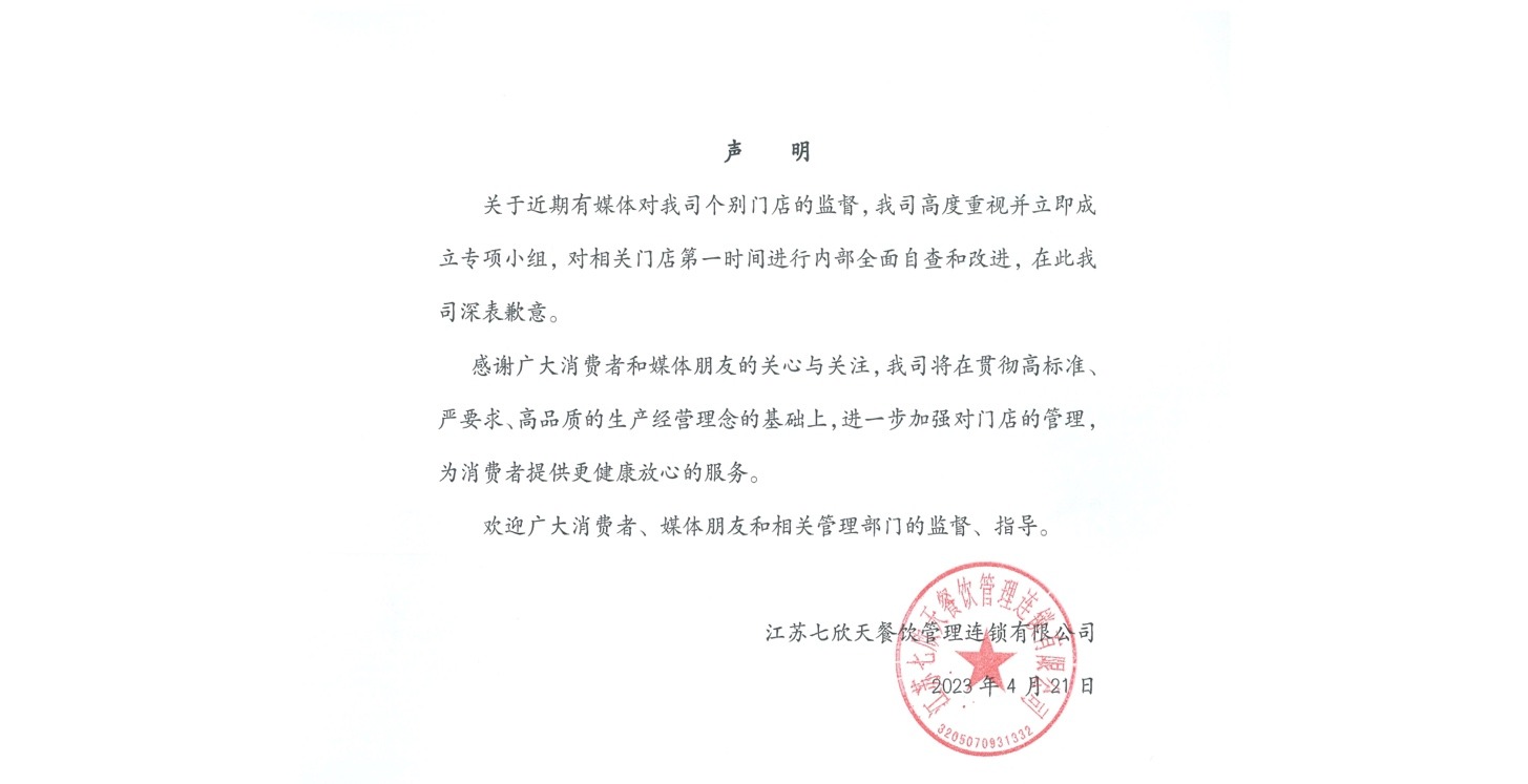 公司已成立专项小组进行自查与改进,未来也欢迎广大消费者、媒体朋友和相关管理部门的监督和指导。